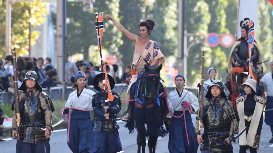 岐阜市の秋の風物詩「ぎふ信長まつり」は3日、市中心市街地の金華橋通りでメイン行事の信長公騎馬武者行列が行われ、公募で選ばれた市内の男女4人が武将や姫の装束をまとい、練り歩いた。今年は若き&ldq…