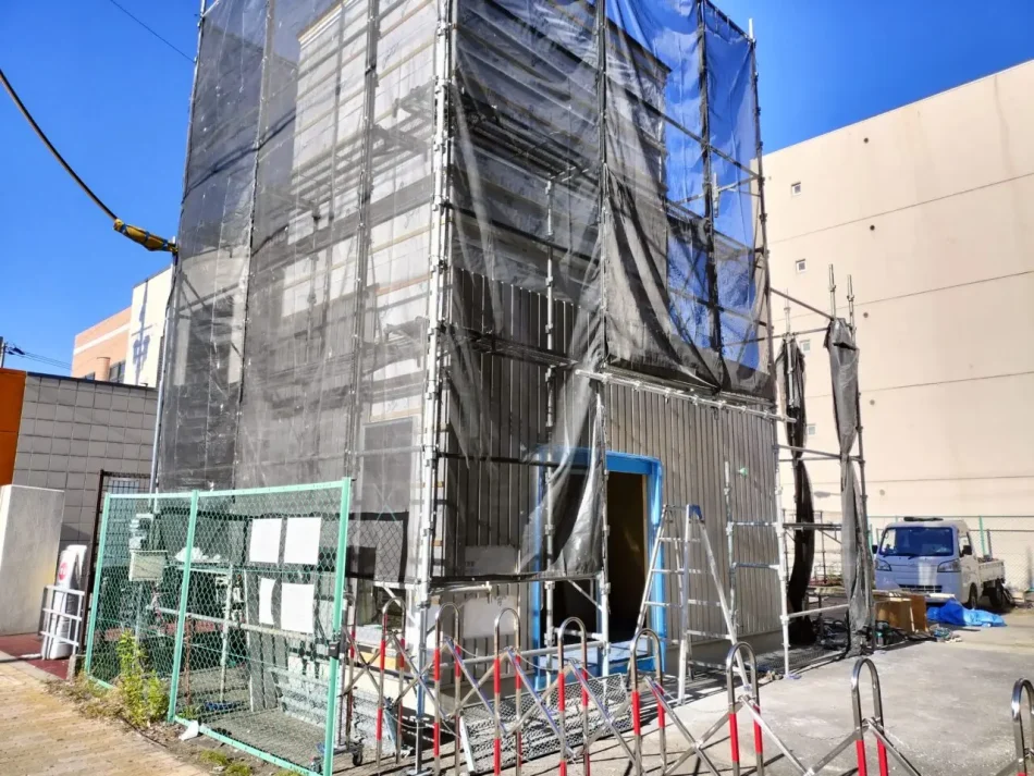 だいどう豊里駅1番出口付近に小さな建物が建てられています。 よく見ると、“だいどう豊里喫煙所新築工事”となっています。 どうやら喫煙所の建物を建設されているようですね。 喫煙所といえば最近ではJR淡路