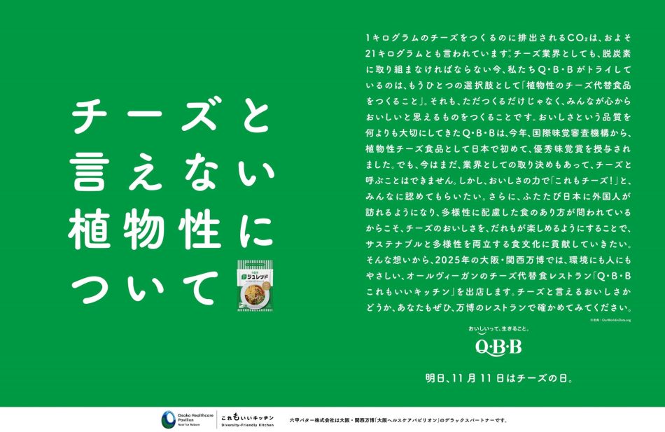 六甲バター株式会社のプレスリリース(2024年11月11日 10時00分)チーズ代替植物性食品を“チーズと言えない”のはなぜ?11月11日「チーズの日」に合わせて意見広告を掲載