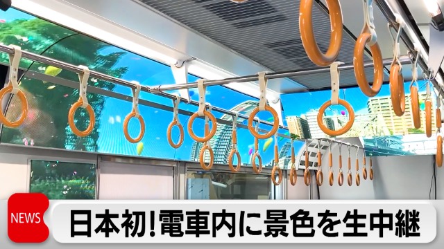JR西日本は、2025年の大阪・関西万博の開催に合わせて在来線で日本初の特別車両を運行すると発表しました。車両の側面などにカメラを設置し、リアルタイムの景色の映像を車内に貼りつけたおよそ900枚のLEDパネルに映し出します。さらに、AR=拡張現実の技術を使い、打ちあがる花火や食い倒れ太郎などを重ね合わせます。移動中に万博のわくわく感を演出する狙いです。